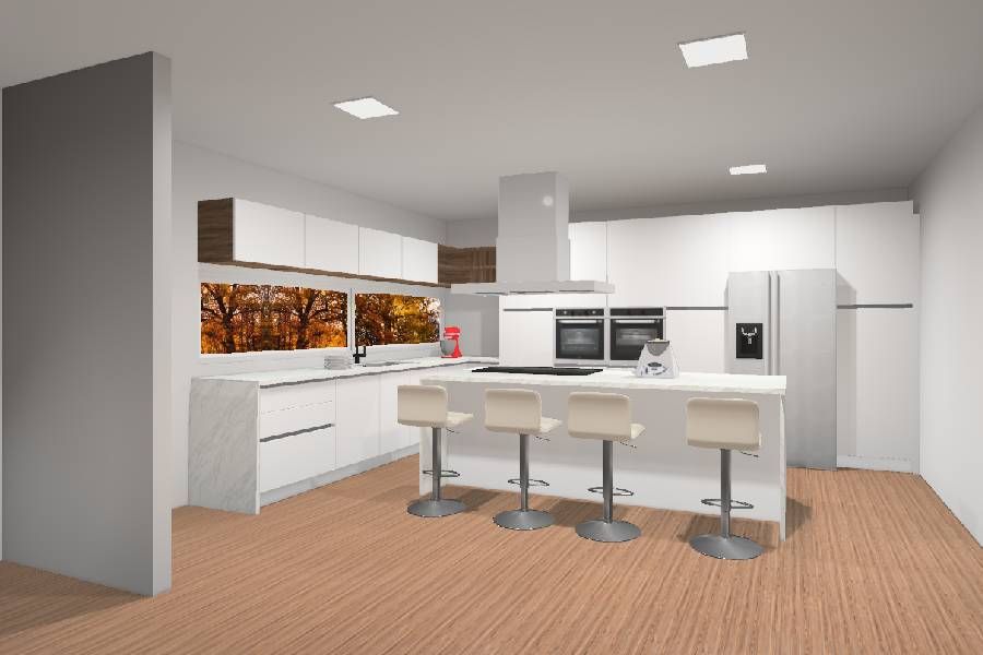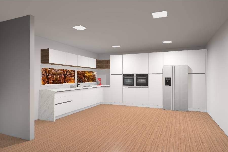Categoria: CozinhasReferência : ContançaDescrição : Cozinha Branco Mate Com Nogueira e Tampos Em Silestone Zeus Branco