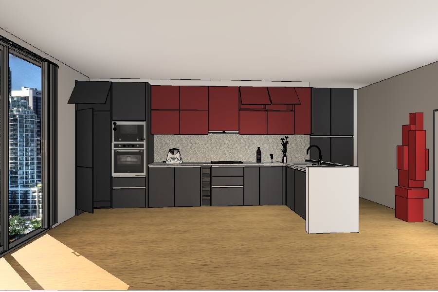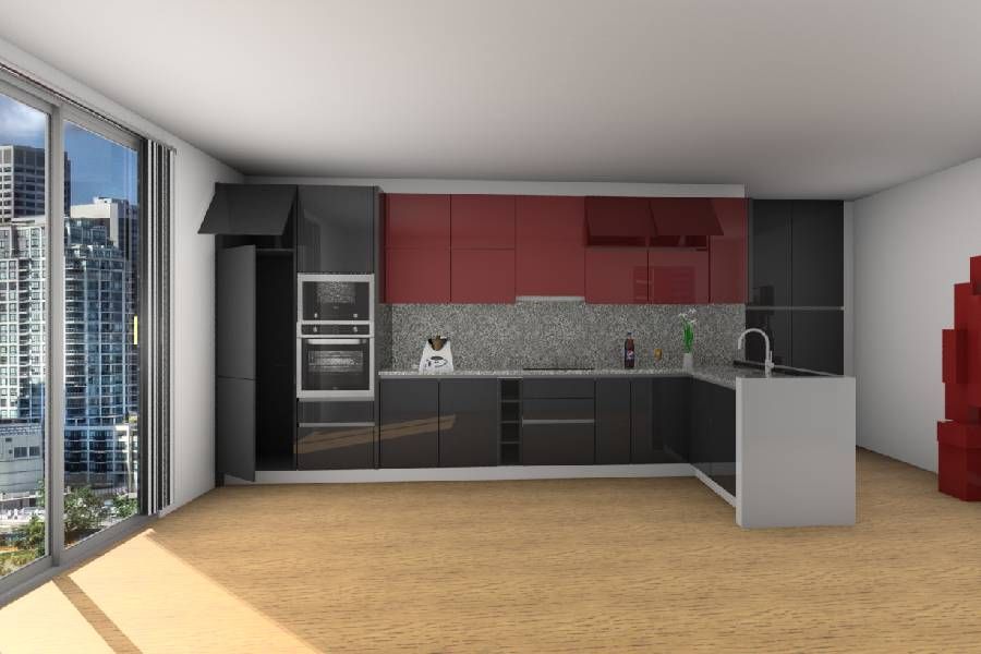 Categoria: CozinhasReferência : DanielaDescrição : Cozinha Gama Fenix Preto e Bourdeaux Com Tampos em Granito Zimbabue