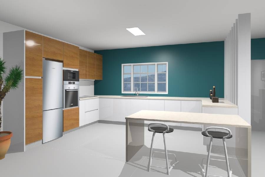 Cozinha Em Lux Magnolia e Carvalho com Tampos em Dekton Gada