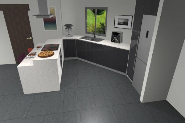Categoria: CozinhasReferência : AdrianaDescrição : Cozinha Adriana Cozinha Bright Colors Cinza Grafite Com melamina As Serena 0320 Com Tampos Silestone Blanco Zeus
