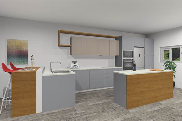 Categoria: CozinhasReferência : ValentinaDescrição : Cozinha Feelness, Cinza com Satin mate, com promenores em carvalho e Tampos em Dekton Rem