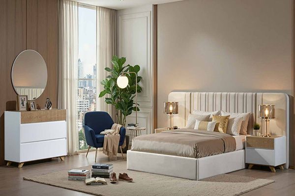 Lacado com carvalho riscado e cama estofada Operan Cream