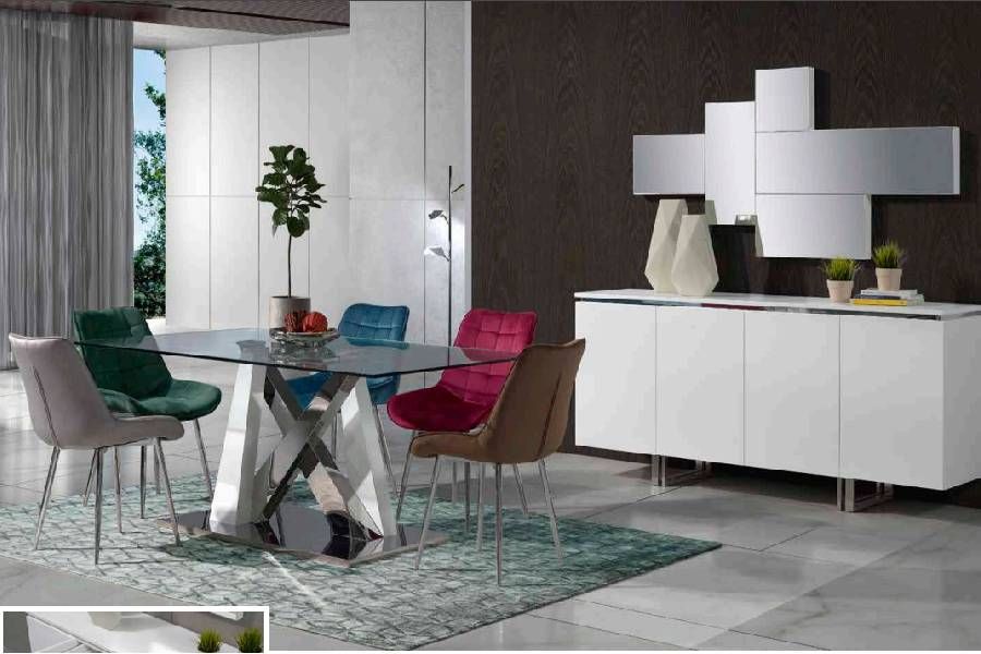 Categoria: Salas de JantarReferência : InêsDescrição : Sala Jantar Ines Composta: Aparador.2100x500x900 Mesa Tampo Vidro 1800x1000x770 Moldura 1900x850