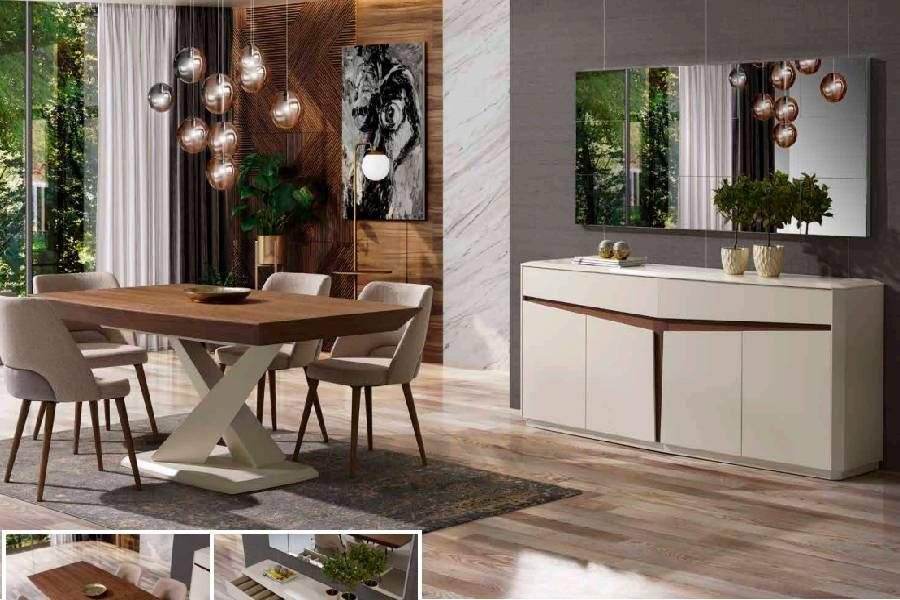 Categoria: Salas de JantarReferência : TeslaDescrição : Sala jantar Tesla Composta. Aparador2100x900x500 Mesa-2000/2600x1050x770 Cadeiras